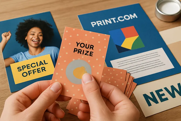 Wil je je marketingcampagne naar een hoger niveau tillen? Overweeg je originele acties? Laat kraskaarten maken bij Print.com en creëer een verrassende ervaring voor je klanten. Kraskaarten bieden een unieke manier om interactie te stimuleren en nieuwsgierigheid op te wekken. Of het nu gaat om een promotieactie, een evenement of een loyaliteitsprogramma, kraskaarten voegen een speels en spannend element toe. Bij Print.com kun je je kraskaarten volledig personaliseren, van ontwerp tot de boodschap onder de kraslaag.